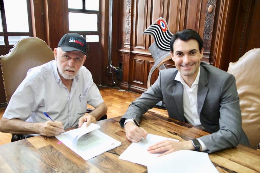 O prefeito Airton Garcia, o secretário de Esporte, Lazer e Juventude do Estado, Cacá Camargo, o coordenador de Esporte e Lazer do Estado, Alexandre Marcus e o diretor de Esporte de Rendimento da Secretaria de Esportes e Lazer de São Carlos e chefe do Comitê Organizador dos Jogos Abertos, Fabiano Lourenço, assinaram nesta quarta-feira (7), em São Paulo, o convênio que dispõe sobre a transferência de recursos financeiros para a cobertura de despesas dos 82º Jogos Abertos do Interior ‘Horácio Baby Barioni” que serão realizados em São Carlos de 14 a 24 de novembro.
