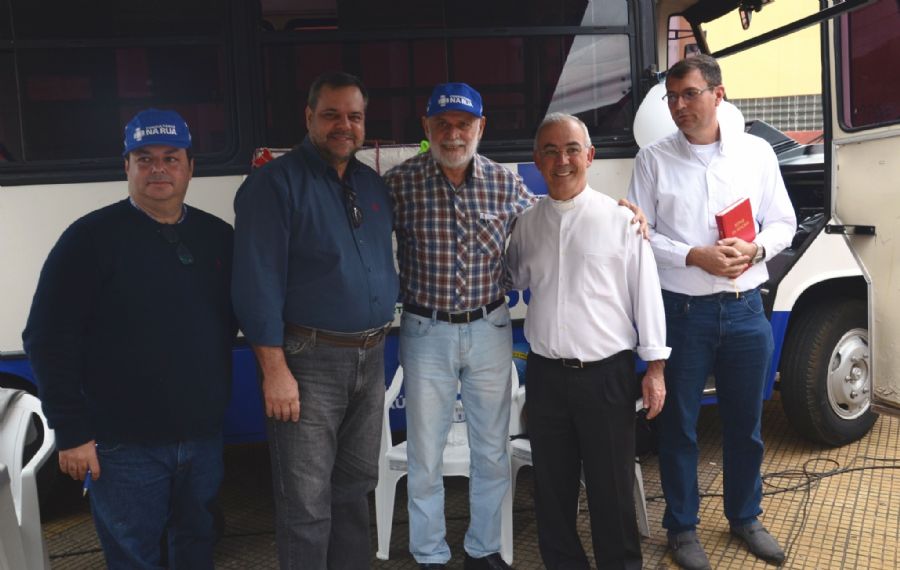 Participaram da solenidade de inicio do serviço do Consultório na Rua de São Carlos, que teve a benção dos padres Nilson de Paula Francisco e José Luiz Beltrame, o prefeito Airton Garcia acompanhado do deputado federal Lobbe Neto, os vereadores Rodson Magno e Luís Enrique (Kiki), o secretário municipal de Saúde, Caco Colenci, além dos secretários municipais de Obras Públicas, Reginaldo Peronti, de Infância e Juventude, Paulo Wilhelm, de Cidadania e Assistência Social, Glaziela Solfa, de Agricultura e Abastecimento, Deonir Tofollo, o diretor da Coordenação de Política Institucional da Secretaria de Governo, Samir Gardini e os profissionais da área de saúde da equipe que vai realizar o atendimento do Consultório na Rua.