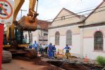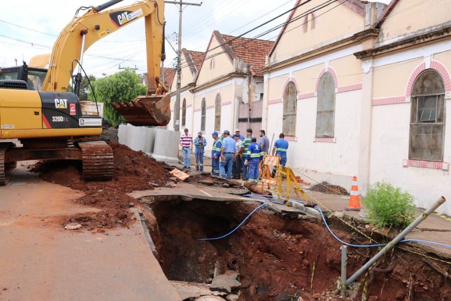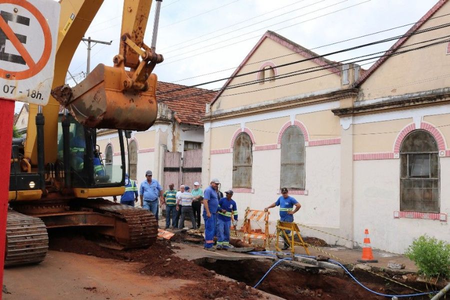 “Vamos trocar 20 metros de tubulação. Já tínhamos feito o conserto, mas a força da água destruiu parte do concreto. Os tubos são muito antigos e em alguns trechos há necessidade de troca. Não adiantava somente fechar o buraco sem fazer essa mudança”, afirmou Mariel Olmo, secretário de Serviços Públicos.