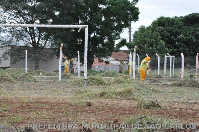 Além dos terrenos, foram executadas manutenção e limpeza de dois campos de futebol e um parquinho do bairro.