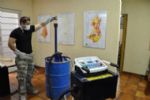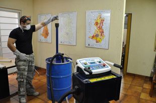A máquina, também chamada de “papa-lâmpadas”, descontamina as lâmpadas e armazena os resíduos contaminantes, especialmente o mercúrio, em um filtro, que é destinado a um aterro de resíduos de classe 1, localizado em Paulínia (SP), especializado no armazenamento do material.