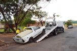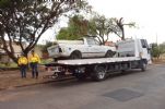 O primeiro carro foi retirado da rua Francisco Carlos Ribeiro da Silva, no bairro Boa Vista. O veículo estava com a lataria avariada e oxidada, vidros quebrados, pneus murchos, sem lanternas e com entulho na carroceria. “Depois de recebida a denúncia, os agentes de trânsito monitoram o estado de abandono durante 30 dias. Decorrido o tempo de monitoramento, o proprietário é notificado por telegrama ou até mesmo via diário oficial, e tem 10 dias para retirar o veículo. Nesse caso, não houve retorno e estamos retirando o veículo que será encaminhado ao Pátio”, informou o agente de trânsito José Silva.