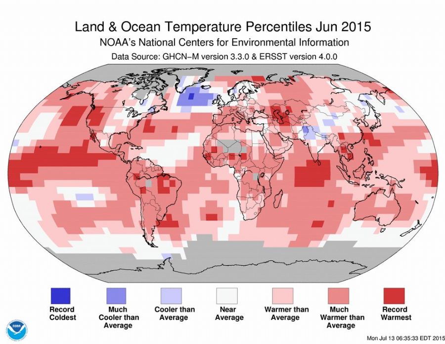 O primeiro semestre de 2015 é o mais quente da história para o período desde que os dados sobre a temperatura global começaram a ser coletados, em 1880. As temperaturas medidas nos meses de março, maio e junho deste ano bateram recorde como as mais quentes, se comparadas às dos anos anteriores.