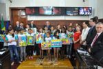 Na tarde desta terça-feira (2), a Câmara Municipal prestou uma homenagem aos Programas Mais Educação e Escola Nossa, da Secretaria Municipal de Educação. Neste ano, foram realizados trabalhos importantes como o lançamento do livro sobre resíduos sólidos, releituras do artista plástico Romero Brito e o Projeto Flitz em parceria com o Lions Clube, voltado ao Meio Ambiente.