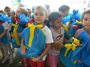 No final do evento, as crianças ainda receberam de presente uma pelúcia, jogo de raquete com bolinha, livro de história infantil, caixa de bombom e um catavento.