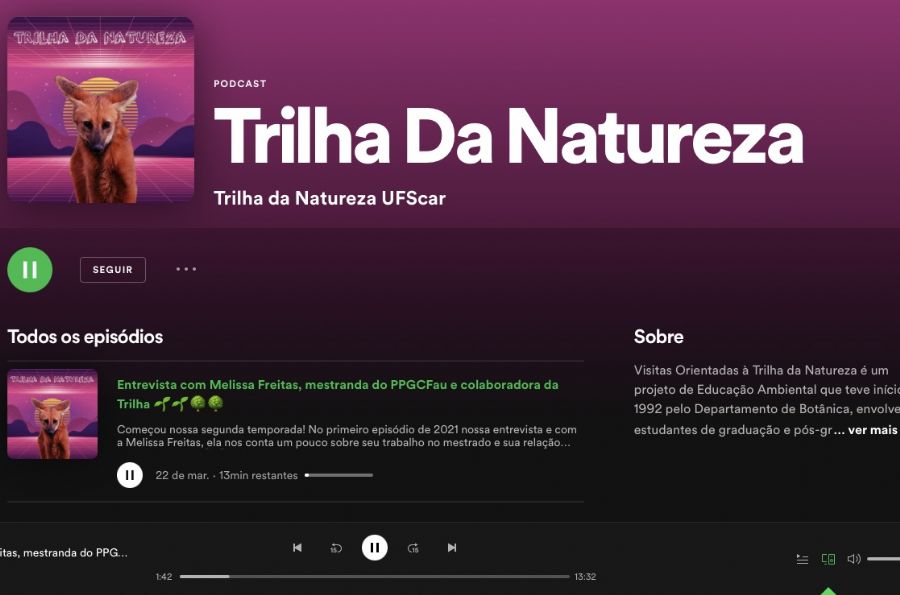 Os podcasts são produzidos pela equipe de monitores e bolsistas do Projeto, sob a coordenação de Eduardo Barreto de Oliveira, estudante do curso de Linguística e bolsista da Pró-Reitoria de Extensão (ProEx), que também apresenta e realiza as entrevistas. Os programas estão disponíveis no Spotify (Trilha da Natureza).