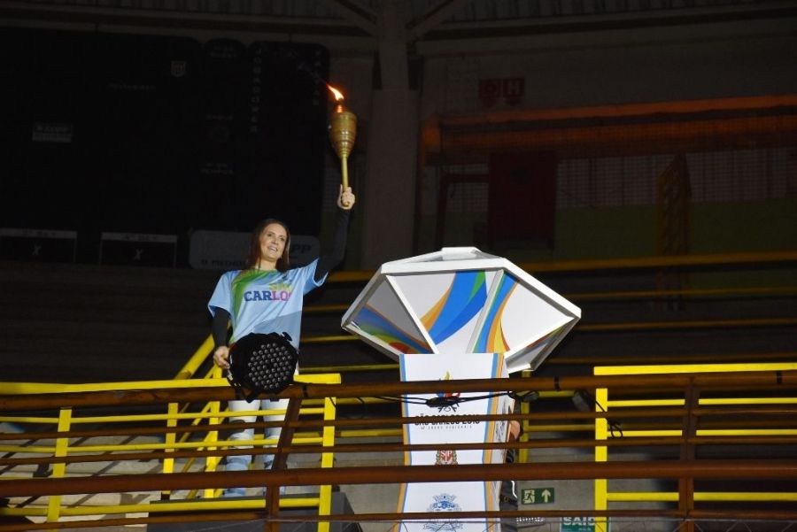 A ex-zagueira da Seleção Brasileira Feminina de Futebol, Mônica de Paula, medalha de prata nos Jogos Olímpicos da Grécia, em 2004, e na Copa do Mundo da China em 2007, conduziu a bandeira de São Carlos junto com a delegação da cidade. Já a ex-atleta Maurren Maggi, medalha de ouro nos Jogos Olímpicos de Pequim em 2008, e tri-campeã panamericana em Winnipeg em 1999, no Rio de Janeiro em 2007, e em Guadalajara em 2011, conduziu e tocha e acendeu a pira na parte superior do ginásio, um momento de muita emoção para o público que compareceu em grande número no Milton Olaio Filho. A atleta Francielle Laura Ramos, da modalidade Taekwondo, 1º DAN Faixa Preta, fez o juramento do atleta.