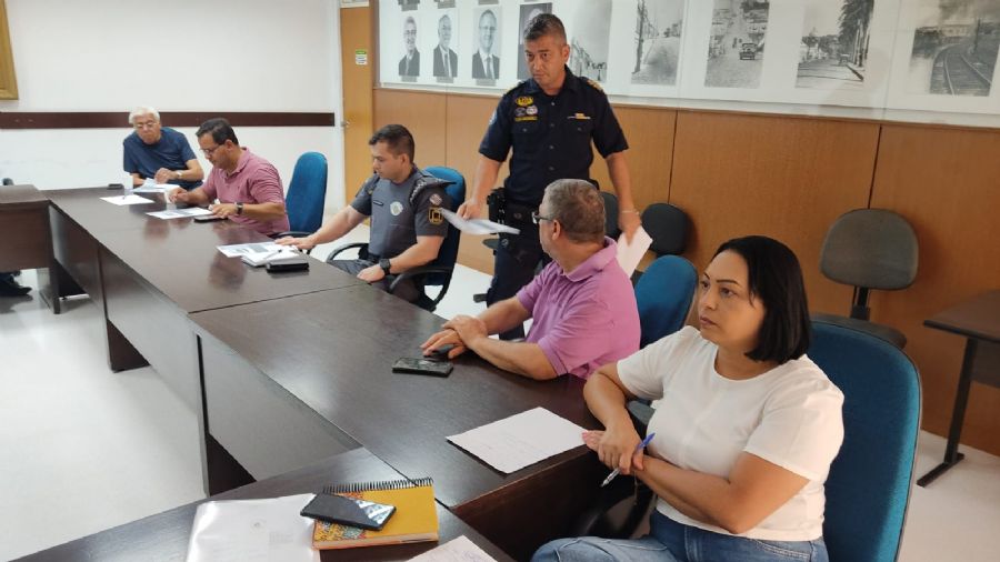 A segunda reunião do Comitê de Crise de Segurança Escolar de São Carlos aconteceu na última sexta-feira (17/11), no Paço Municipal, com a participação dos secretários de Segurança Pública, Samir Gardini, de Educação, Roselei Françoso, do vereador Azuaite Martins de França, de representantes da Guarda Municipal, da Polícia Militar e dos Agentes de Trânsito.