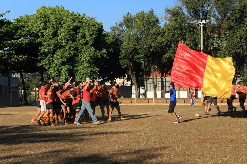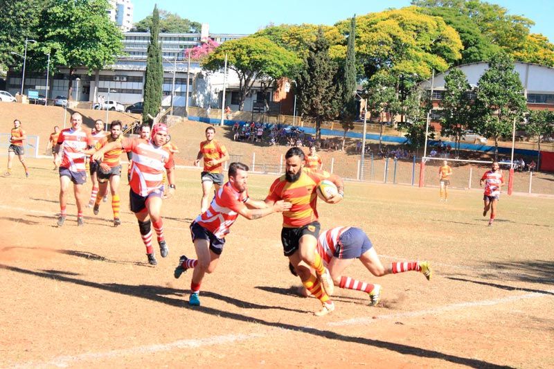Quando o placar parecia que se manteria no 0x0, Arthur Pinheiro avançou pela ponta direita e, mesmo sendo acossado por um adversário, abriu o placar para o São Carlos com um try, que não foi convertido. Eram passados 20 minutos do primeiro tempo e o árbitro parava o jogo para hidratação dos atletas.