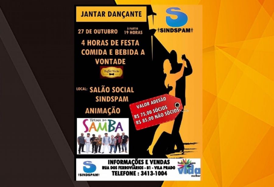 O Sindicato dos Servidores Públicos e Autárquicos Municipais de São Carlos (SINDSPAM) promoverá no próximo dia 27 de outubro (sábado) um sensacional jantar dançante em homenagem ao Dia do Servidor Público Municipal.