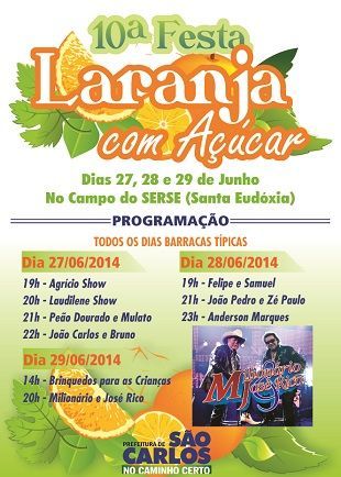 Festa da Laranja com Açúcar 2014 no Distrito de Santa Eudóxia acontece de 27 a 29 de junho.