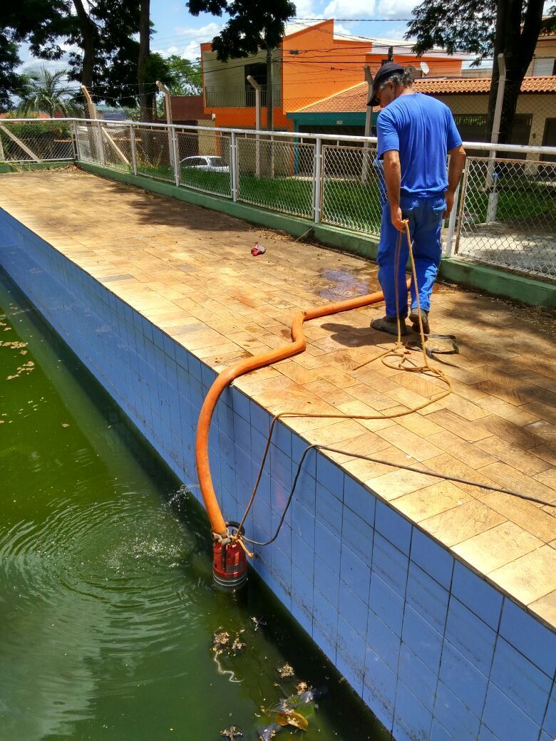 As piscinas estavam sem manutenção desde o ano passado, inclusive com acúmulo de água de chuva, ambiente propício para formação de criadouros do mosquito Aedes aegypti, transmissor da Dengue, Chikungunya e Zika.