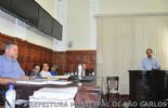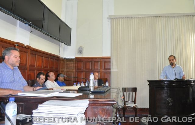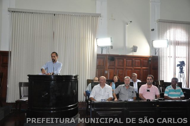 Antes de iniciar sua fala, o secretário Caio Graco fez questão de entregar um resumo de Leis e Ações relativas ao assunto em pauta para cada um dos vereadores e autoridades presentes. Na sequência, o secretário lembrou que infelizmente a introdução do tema segurança se deu somente a partir da tragédia ocorrida em Santa Maria, no Rio Grande do Sul, e que este fato foi o principal motivo de ações conjuntas do poder público municipal, através da Secretaria de Habitação e Desenvolvimento Urbano, Corpo de Bombeiros e Ministério Público, a partir da instauração do Inquérito Civil para apurar a situação dos locais de reunião de público na cidade de São Carlos.