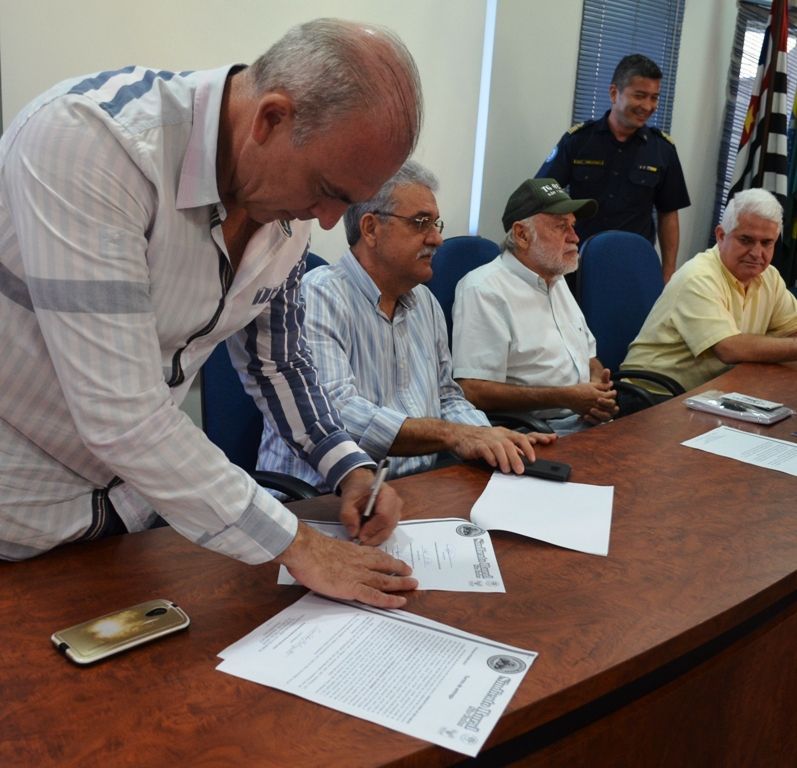 Durante solenidade realizada na sede do Sindicato com a presença do Prefeito Airton Garcia, do vereador Marquinho Amaral, vice-presidente da Câmara Municipal, do diretor de Política Institucional da Secretaria de Governo, Samir Gardini e do comandante da Guarda Municipal, Michael Yabuki, o vice-presidente do Sindicato Rural, Cláudio Di Salvo, em nome do presidente da entidade,Eunízio Malagutti, que não pode estar presente, assinou o termo de doação ao município.