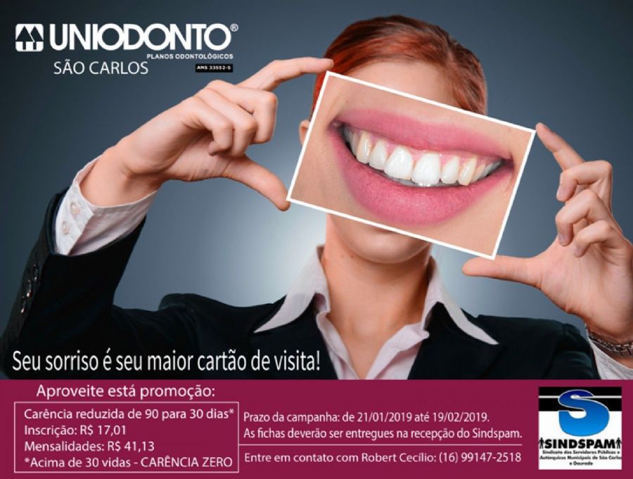 O Sindicato dos Servidores Públicos Municipais e Autárquicos de São Carlos (Sindspam) e a Uniodonto, iniciaram mais uma campanha promocional. De 21 de janeiro até 19 de fevereiro você associado do sindicato terá uma nova chance em oferecer a sua família o melhor plano odontológico da região.
