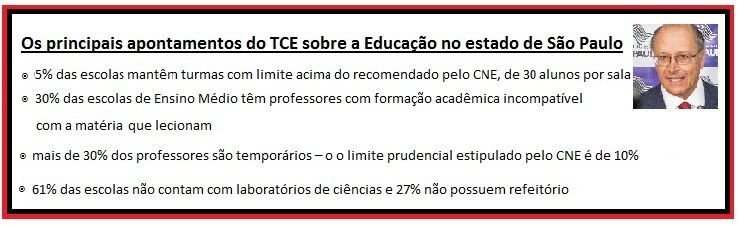O Tribunal destaca ainda que parte das escolas estaduais tem a instalação física precária, sem laboratórios, livros e quadras, por exemplo.