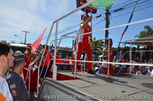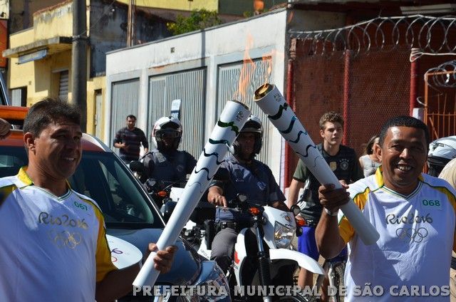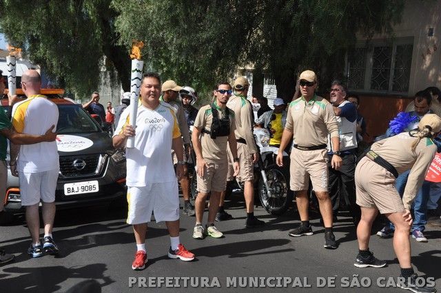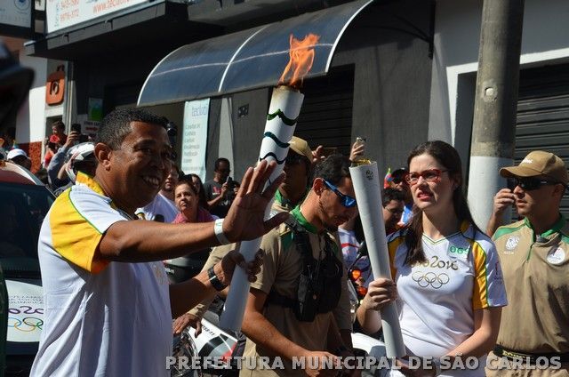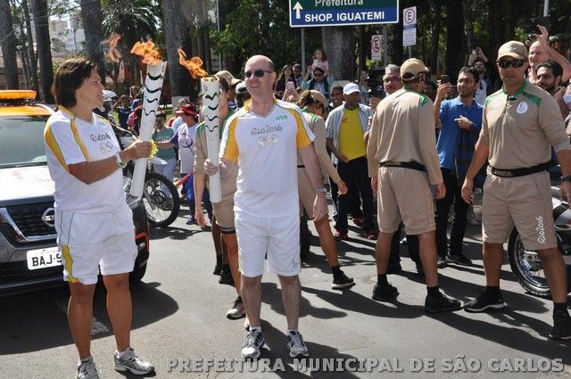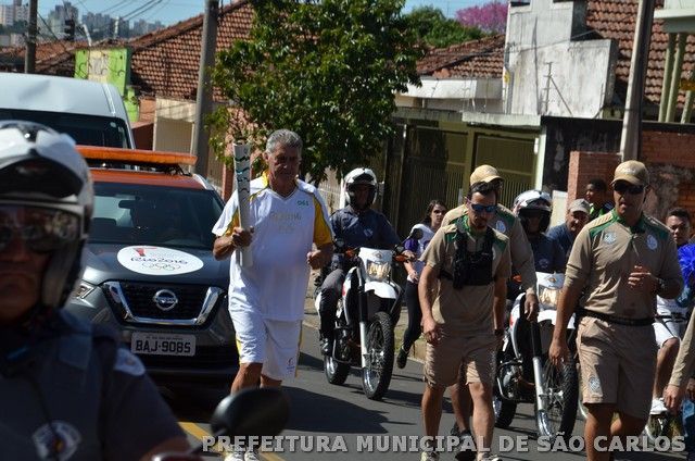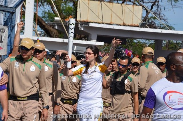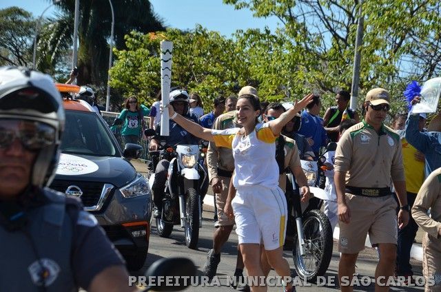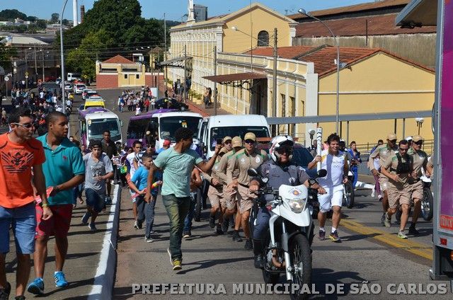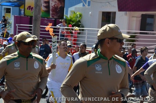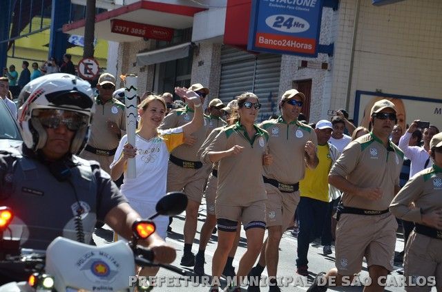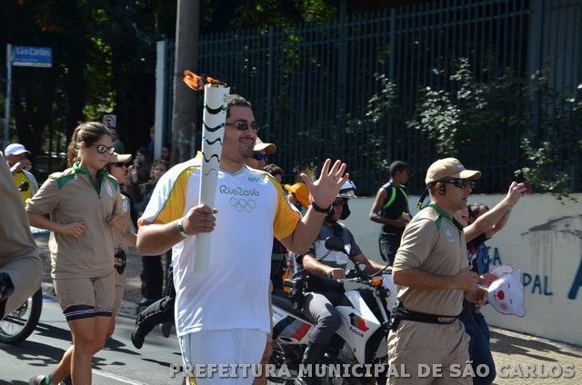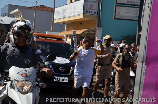 Escoltados pela Força Nacional, Polícia Rodoviária Federal, Polícias Militar, Civil, Guardas Municipais, Agentes de Transito e mais de duzentos voluntários, os condutores se revezaram a cada duzentos metros, ainda pela avenida o cientista Vanderlei Salvador Bagnato foi um dos mais aplaudidos, e trouxe uma mensagem que tocou o público. “Pra ser inesquecível não precisa ser famoso, basta ser um professor”, exibiu o cientista em um cartaz, mostrando a importância da educação. Com o trânsito interditado os são-carlenses tomaram as ruas, em outro momento de grande emoção a ex-jogadora de futebol Mônica de Paula, medalha de prata com a Seleção Brasileira nos Jogos Olímpicos da Grécia, levou a tocha pelo trecho em frente à Praça Coronel Salles. “Tudo que a chama representa, união, garra e superação, é o que sempre tive em minha vida e hoje ofereço aos meus alunos”, disse Mônica.