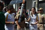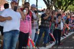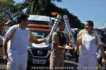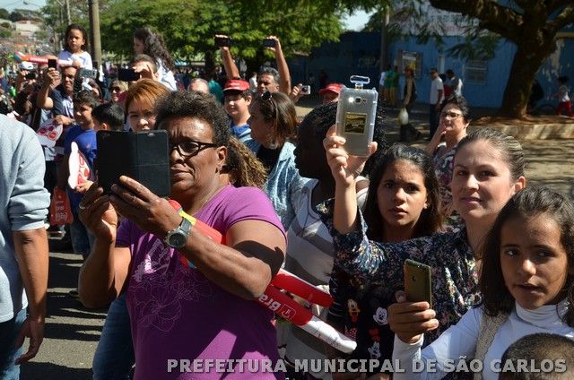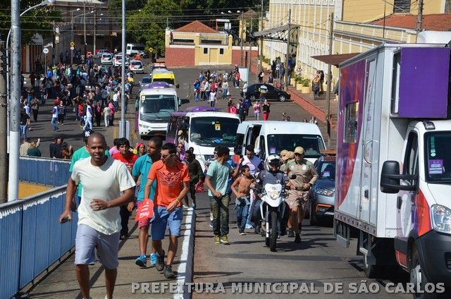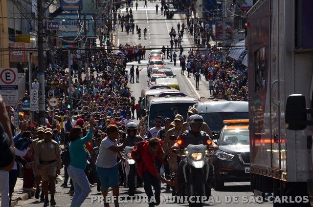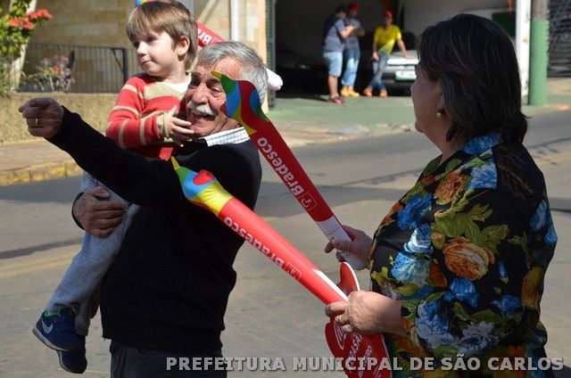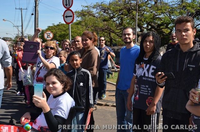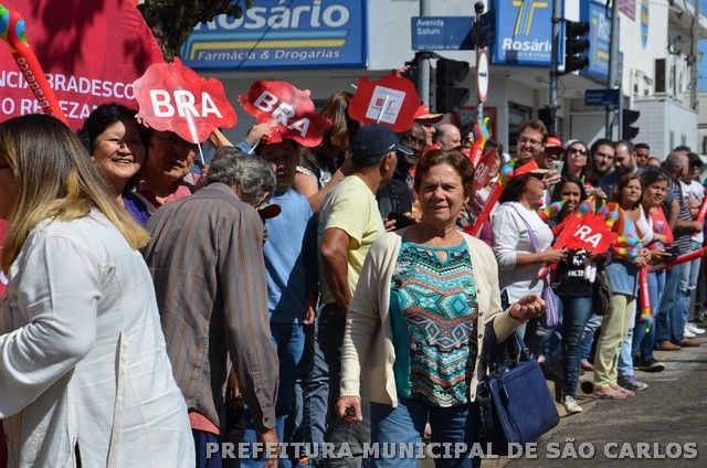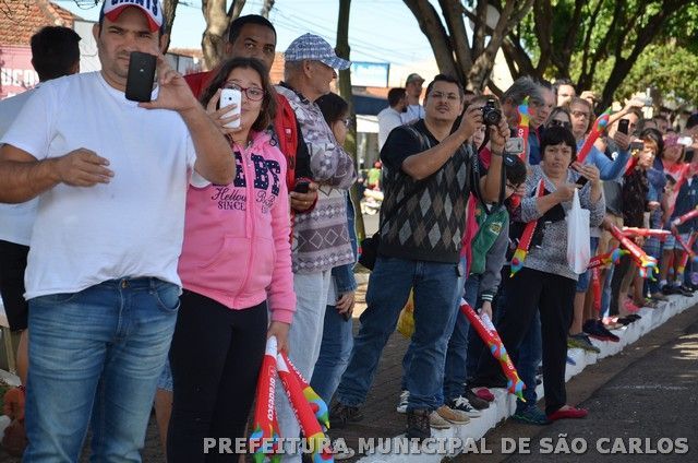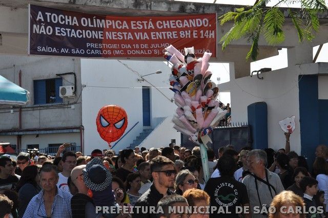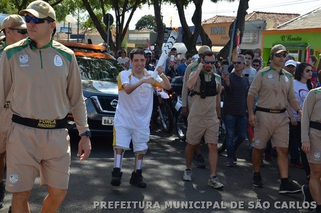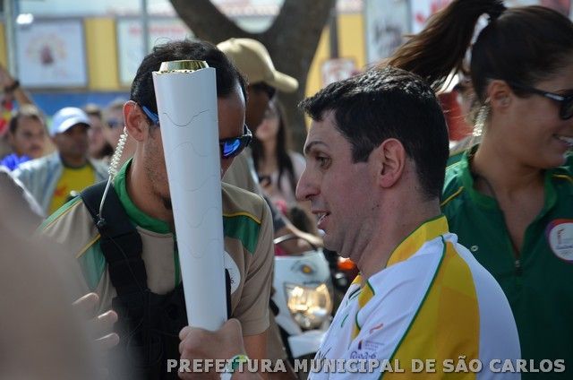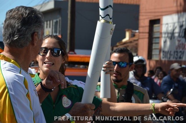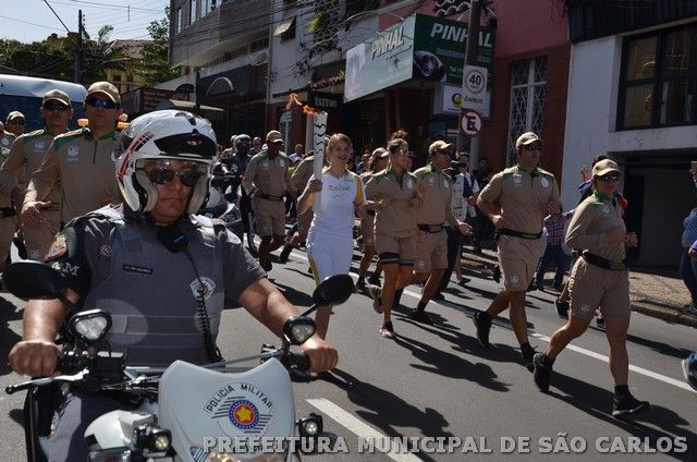Escoltados pela Força Nacional, Polícia Rodoviária Federal, Polícias Militar, Civil, Guardas Municipais, Agentes de Transito e mais de duzentos voluntários, os condutores se revezaram a cada duzentos metros, ainda pela avenida o cientista Vanderlei Salvador Bagnato foi um dos mais aplaudidos, e trouxe uma mensagem que tocou o público. “Pra ser inesquecível não precisa ser famoso, basta ser um professor”, exibiu o cientista em um cartaz, mostrando a importância da educação. Com o trânsito interditado os são-carlenses tomaram as ruas, em outro momento de grande emoção a ex-jogadora de futebol Mônica de Paula, medalha de prata com a Seleção Brasileira nos Jogos Olímpicos da Grécia, levou a tocha pelo trecho em frente à Praça Coronel Salles. “Tudo que a chama representa, união, garra e superação, é o que sempre tive em minha vida e hoje ofereço aos meus alunos”, disse Mônica.
