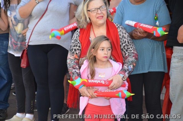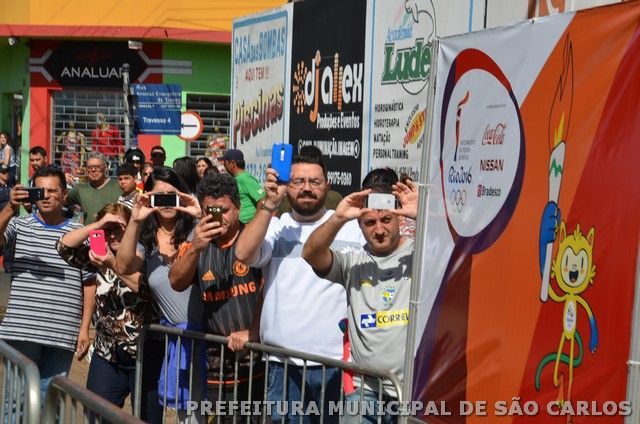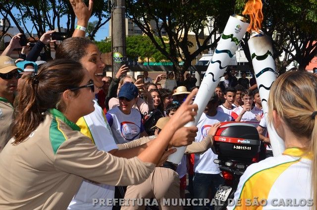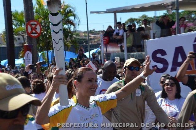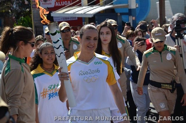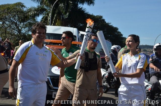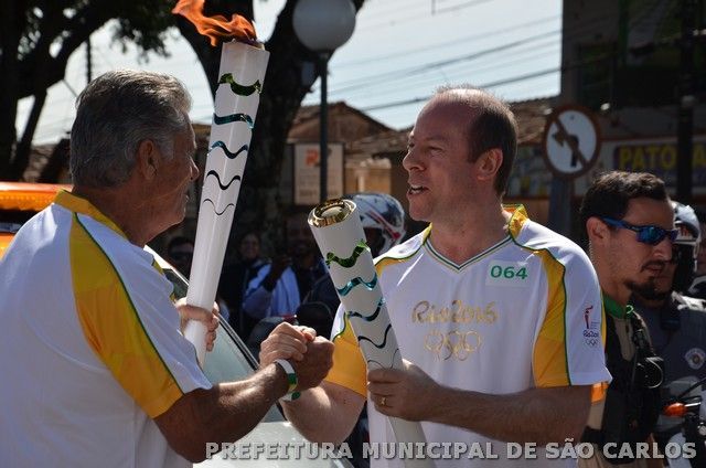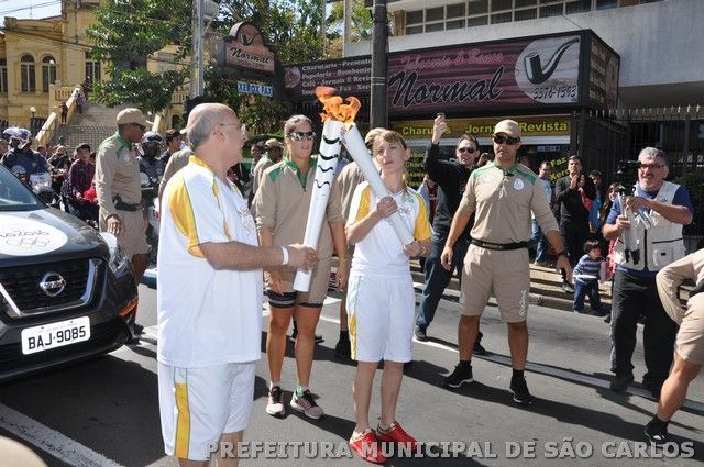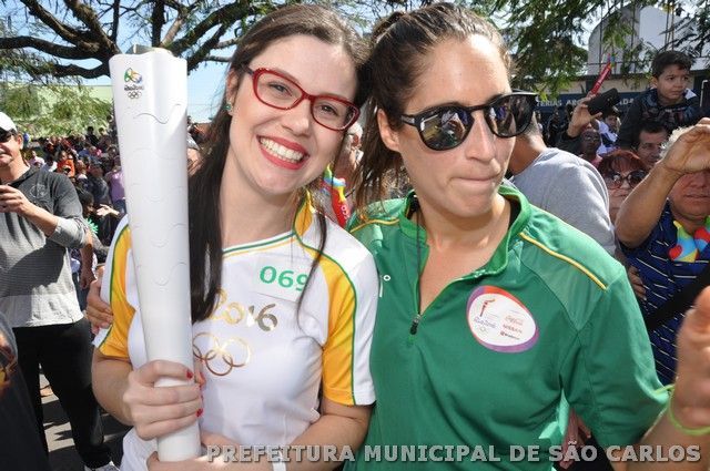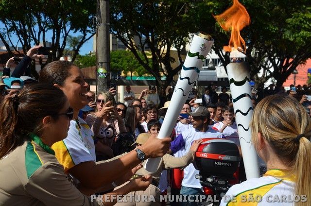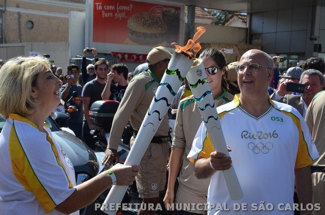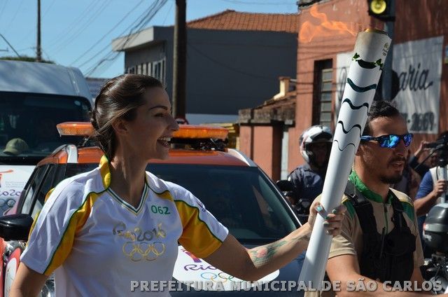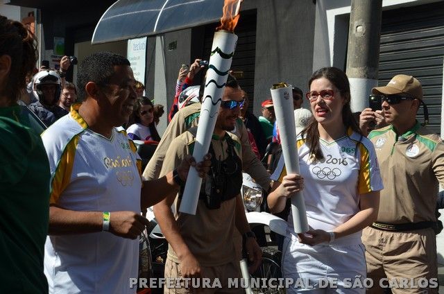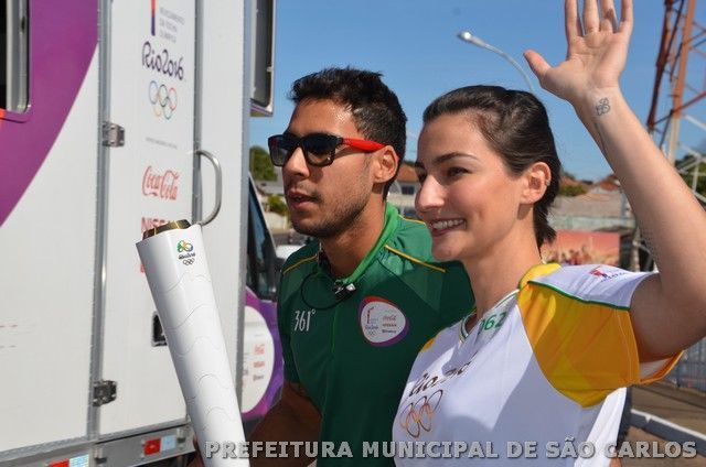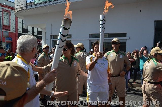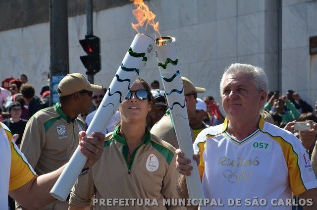 O comboio com o fogo que vai acender a pira dos Jogos do Rio de Janeiro no próximo dia 5 de agosto chegou a São Carlos nesta segunda-feira (18), por volta do meio-dia e levou uma multidão às ruas. Surpresa do evento a campeã olímpica Maurren Maggi recebeu a Tocha dos embaixadores, alunos da ETEC Paulino Botelho e da EMEB Dalila Galli e foi a primeira condutora pela avenida São Carlos.