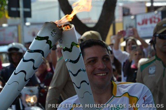 Outra multidão esteve reunida na Praça do Mercado, todos querendo tirar fotos e registrar o momento histórico da passagem do fogo que foi aceso em abril em Olímpia, na Grécia, por São Carlos. Após concluir a subida da avenida São Carlos, o comboio subiu pela rua Santa Cruz, também em mão invertida, até chegar a frente da Estação Cultura, onde subiu o pontilhão em direção a rua Dr. Teixeira de Barros, a tradicional rua Larga, já na Vila Prado. Lá um dos momentos de maior emoção, o paratleta Henrique Sacomano Nasser, foi ovacionado pelo público ao levar o fogo. Com limitações para andar, Nasser mostrou determinação e alegria que contagiaram a todos. “Foi a coroação de um trabalho que faço como paratleta há nove anos representando São Carlos, uma grande emoção”, disse Nasser.
