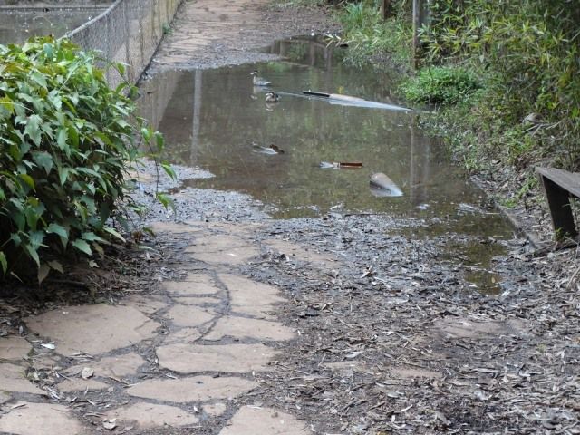 A passagem externa e principal entrada do parque tem a água do Córrego Espraiado quase que acima do nível da ponte. De acordo com o vereador, tal fato pode comprometer a estrutura da ponte. Além disso, devido ao alto nível da água do córrego, uma das passagens interna próxima ao lago que abriga os patos e cisnes está interrompida.